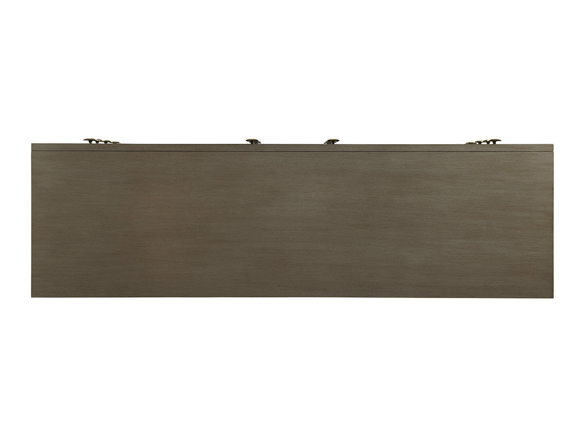 The eight full-extension self-closing drawers are ideal for clothing storage, and the elegant silver gray painted drawer interiors are a custom touch. The beveled face frame on the front of the piece is highlighted by a dark charcoal bead molding. Classic tapered legs complete the design.