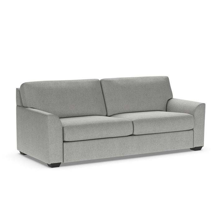 The charming Kaden features a classic frame with gently sloping arms, loose cushions for a relaxed look, square tapered wooden legs, and double-needle top-stitching.