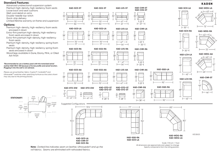 Effortless style and sumptuous comfort define this sofa, which undoubtedly accounts for its enduring popularity. The versatile Kaden can be dressed up or down depending on your choice of covering. Appealing design details abound, including a classic frame with gently sloping waterfall arms. Styled to blend with any decor, the Kaden collection offers a wide variety of sectional pieces in limitless configurations.