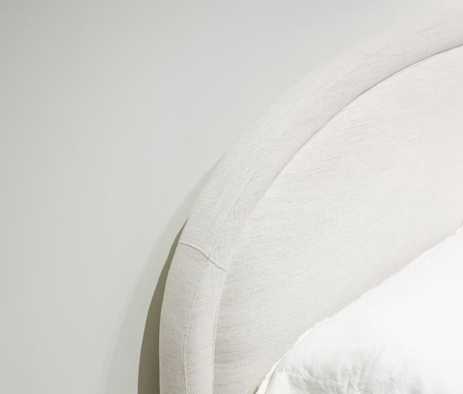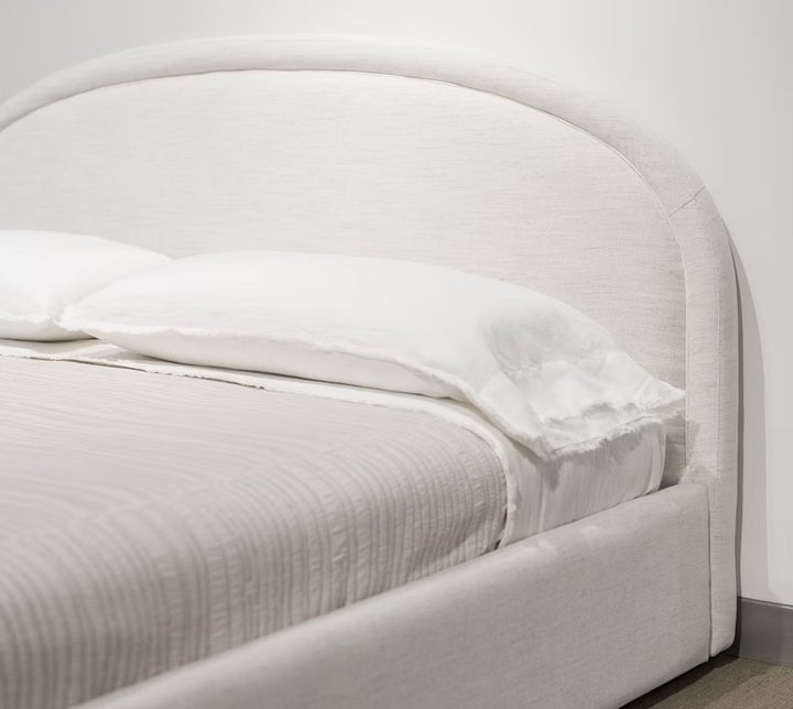 Introducing the Kenley Bed: where organic curves meet serene comfort. Featuring a low-profile, curved headboard with rolled corners, it embodies a fluid, natural aesthetic. The Kenley is a haven of relaxation, designed to cradle your dreams in unparalleled style.