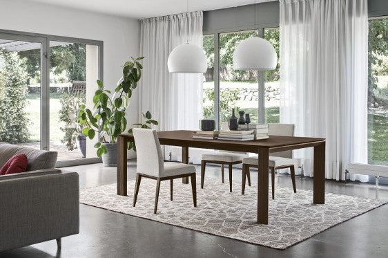 The perimeter legs have a slanting cut in the inside part, a distinctive detail in the aesthetics. OMNIA is a drop leaf- table for furnishing the dining room. Configure it in the version you prefer.