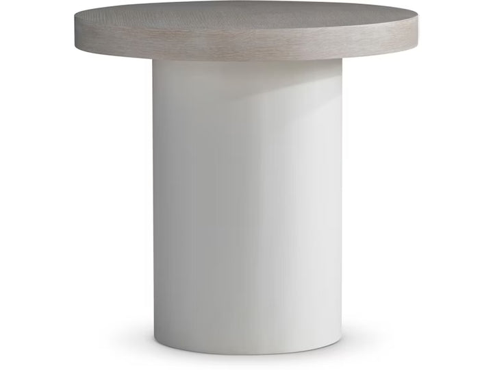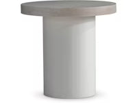 Product Description Wirebrushed Oak Side Table with Top in Bone finish. Cylinder Base in Fossil finish. Adjustable glides.